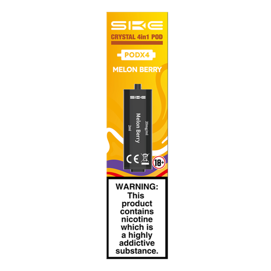 The SKE Crystal 2400 4 in 1 Prefilled Pods have been designed for use with the SKE Crystal 2400 4 in 1 Pod Kit. Each pod contains 2ml of prefilled Nicotine Salts with 20mg of nicotine salts and provide up to 600 puffs. The pods contain a mesh coil, ehancing the flavour and smoothness of the vape.
