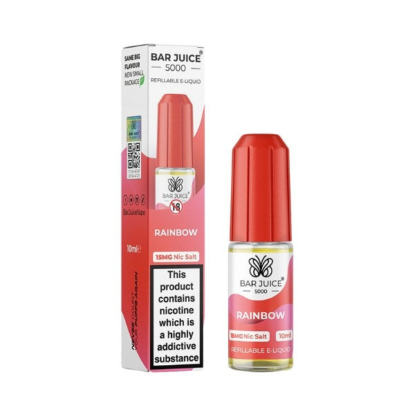 Bar Juice - Nic Salt - Rainbow - Welcome to the kaleidoscopic world of Rainbow vape juice which is as flamboyant as a carnival, with mind-dazzling colour and spectacle. Here, the vibrant hues of your favourite juicy sweets grab you in a partying embrace. It's like a burst of rainbow magic in every puff, a colourful adventure that turns your vape into a bursting prism of sweet deliciousness.