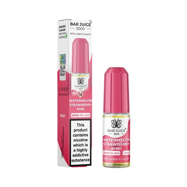 Bar Juice - Nic Salt - Watermelon Strawberry Kiwi - Step into the juicy wonderland of Watermelon Strawberry Kiwi vape juice, a trifecta of fruity summertime delight that dances on your taste buds like the best-ever fruit salad. It's like a fruity medley in every puff, a summer lovin’ of watermelon, strawberry, and kiwi that transforms your vape into a fruit-infused fantasy. It’s a fruity whirlwind you’re gonna love.