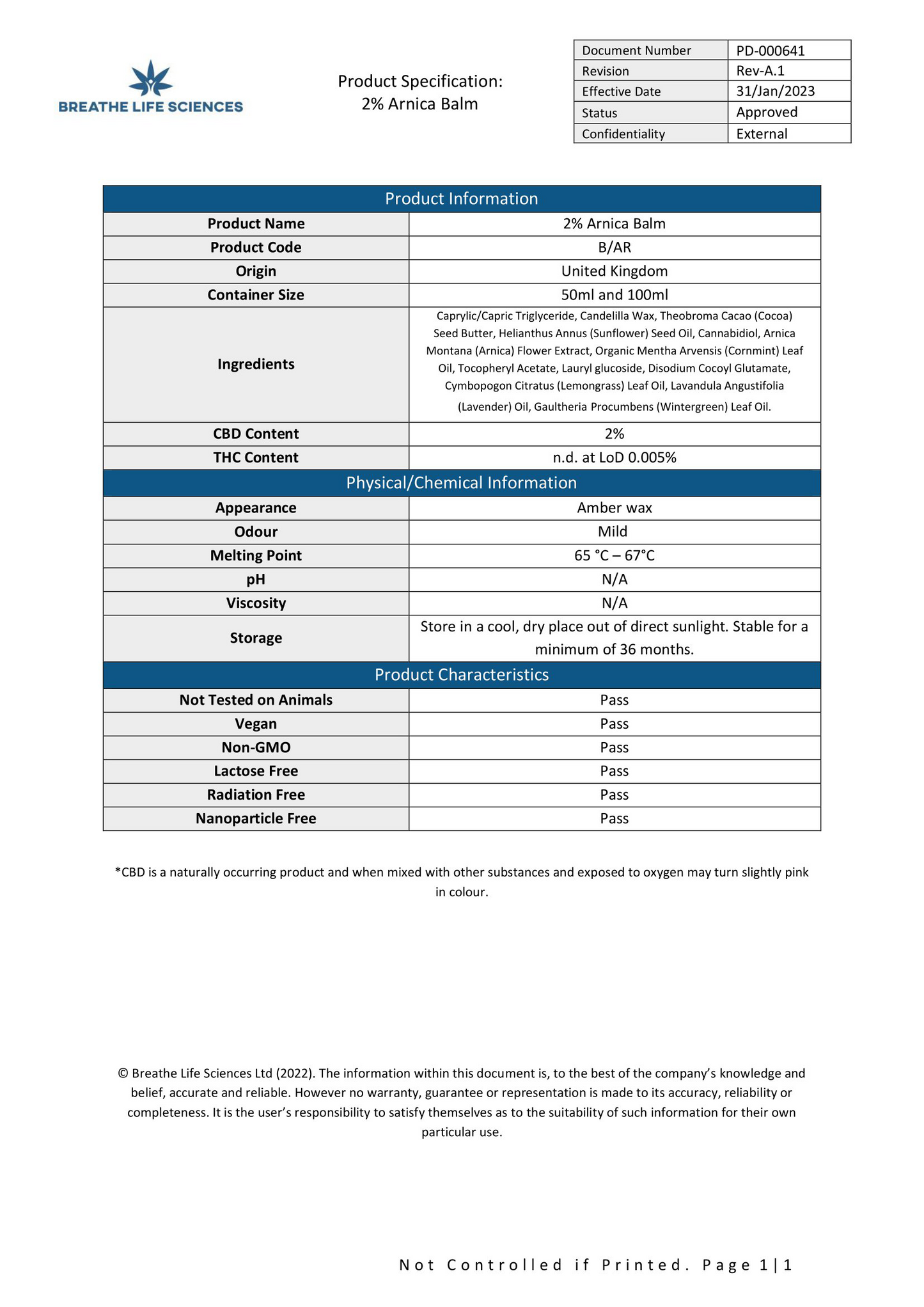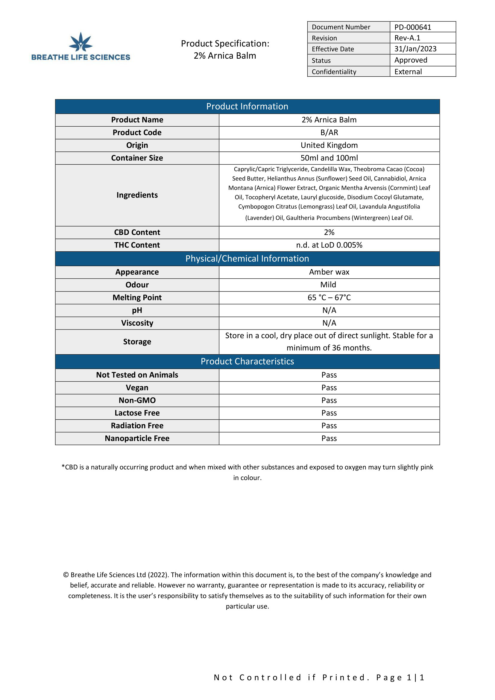 - 2% CBD, 1000MG Sports Relief Arnica Balm