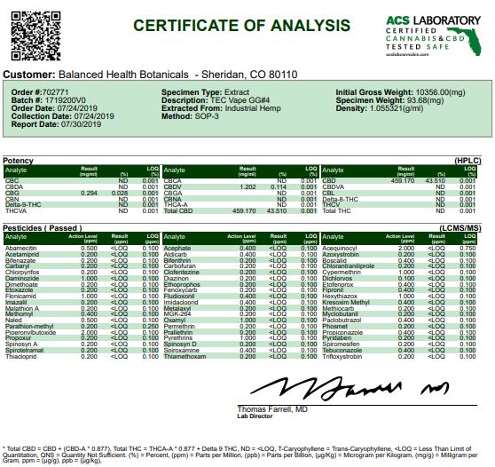 Ingredients: Triethyl citrate, Cannabidiol (CBD) from hemp extract, Natural flavourings, Terpenes, THC content<0.2%
