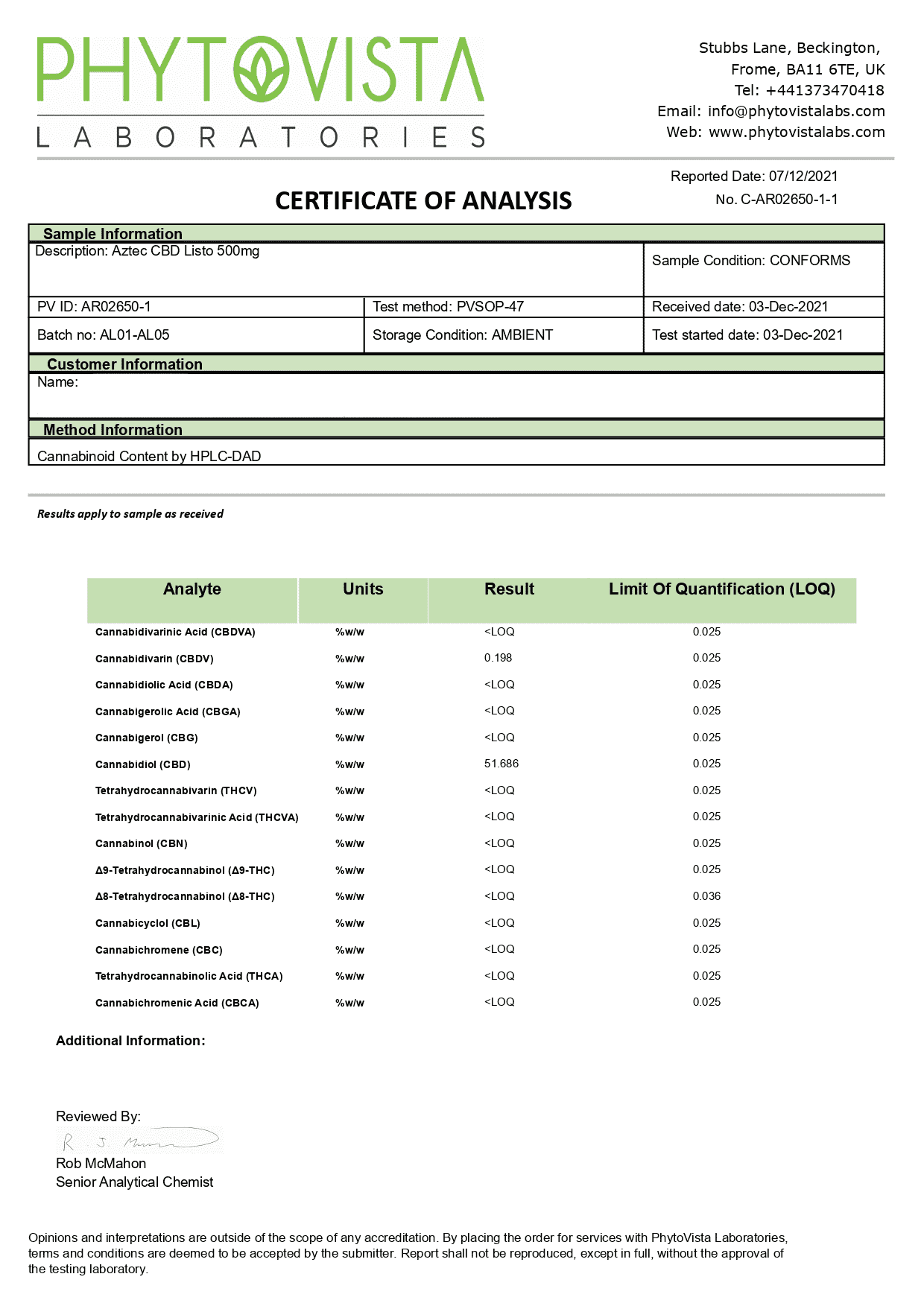 Ingredients: 500mg Cannabidiol, MCT Oil, Natural Flavour.