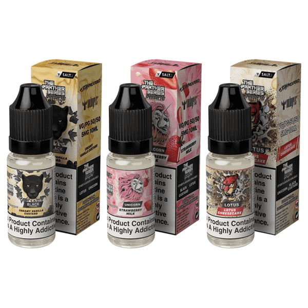 Being a range of 50VG/50PG e-liquids, these Panther Series Nic Salts are ideally suited for Mouth To Lung (MTL) vaping with pods and starter kits which is catered for both experienced vapers as well as newcomers looking to make the switch from smoking to change their lives for the better. With your chosen MTL device and flavour, the nicotine intake will be absorbed much faster and will stay inside for longer. From the first puff to the last, small amounts of vapour will be produced as you vape as well as a smooth feeling hit to the throat.
