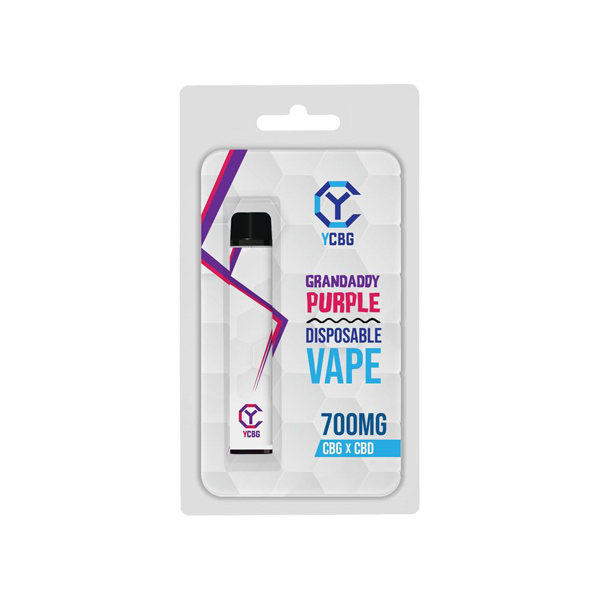 Offering 700mg of combined, potent CBD and CBG to vape, these yCBG Bar Disposable Vape Pens will offer a premium vaping experience to any vaper looking to enjoy the combined benefits of both cannabinoids in vapour form. With up to 7 flavours to choose from, each infused with 2ml e-liquids of individual cannabis strain terpenes that all bring their respective aromas along with unforgettable tastes that you'll experience from as soon as you inhale your chosen flavour. Made from USA sourced hemp that's been organically grown and extracted, all the yCBG Bar flavours have been lab tested to guarantee their purity, potency and safety to all consumers. In addition to being grown and sourced from natural elements, these yCBG Bars are suitable to all vegans.