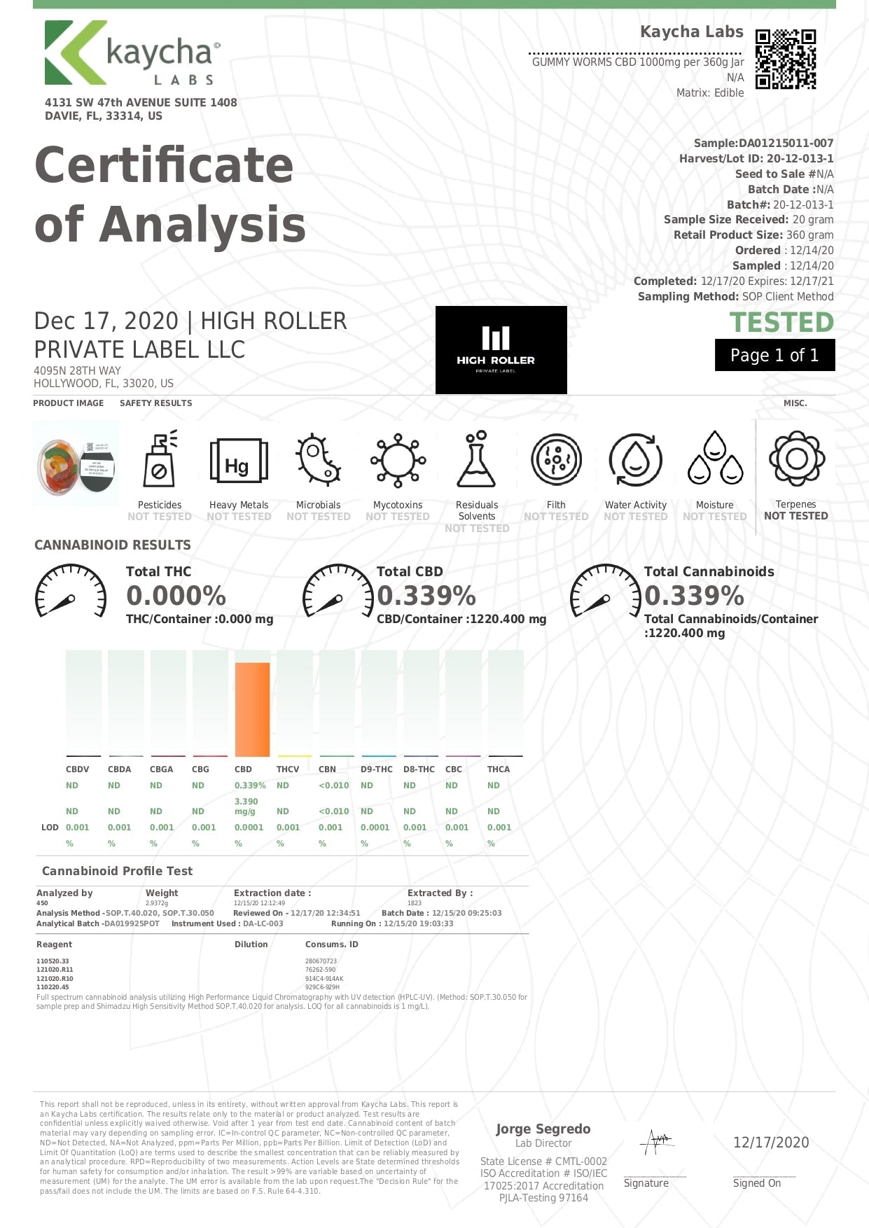 CORN SYRUP (FROM CORN), SUGAR (FROM BEETS), WATER, GELATIN, LACTIC ACID, CITRIC ACID, NATURAL AND ARTIFICIAL FLAVORS, PECTIN (DERIVED FROM FRUIT), FD&C YELLOW #5, FD&C RED #40, FD&C YELLOW #6, FD&C BLUE #1, HEMP EXTRACT CANNABIDIOL (CBD), Coconut oil.