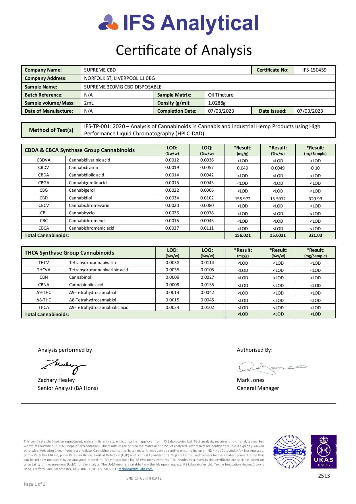 - 1 x Supreme CBD 300mg CBD Disposable Vape Device