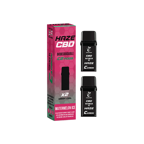 Discover new heights in vaping with HAZE CBD Carbon Pods! Crafted with eco-friendly materials in Britain, these biodegradable pods will revolutionize your sense of environmental responsibility. Each package contains two 2ml pods, full of tantalizing flavours, that offer up to 800 puffs each. Enjoy a pleasant and responsible vaping experience with HAZE CBD and explore a realm of flavour today!
