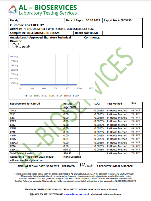 Loxa Beauty 1000mg CBD Moisture Cream - 100ml