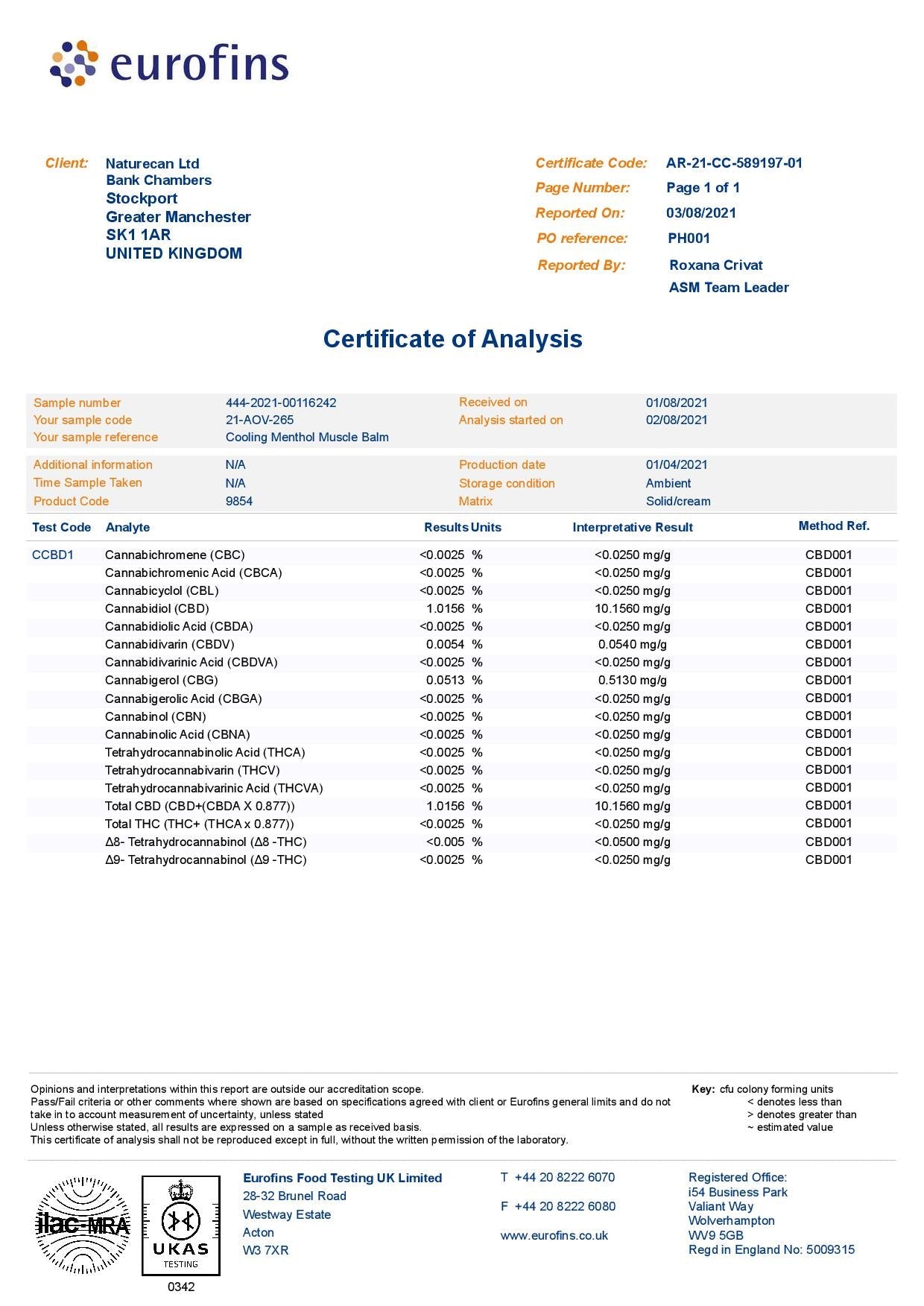 How To Use: Apply a thin layer of CBD muscle balm onto the affected area. Perfect following intense exercise or sport, use this CBD Muscle Balm as part of your regular recovery or body management regime.