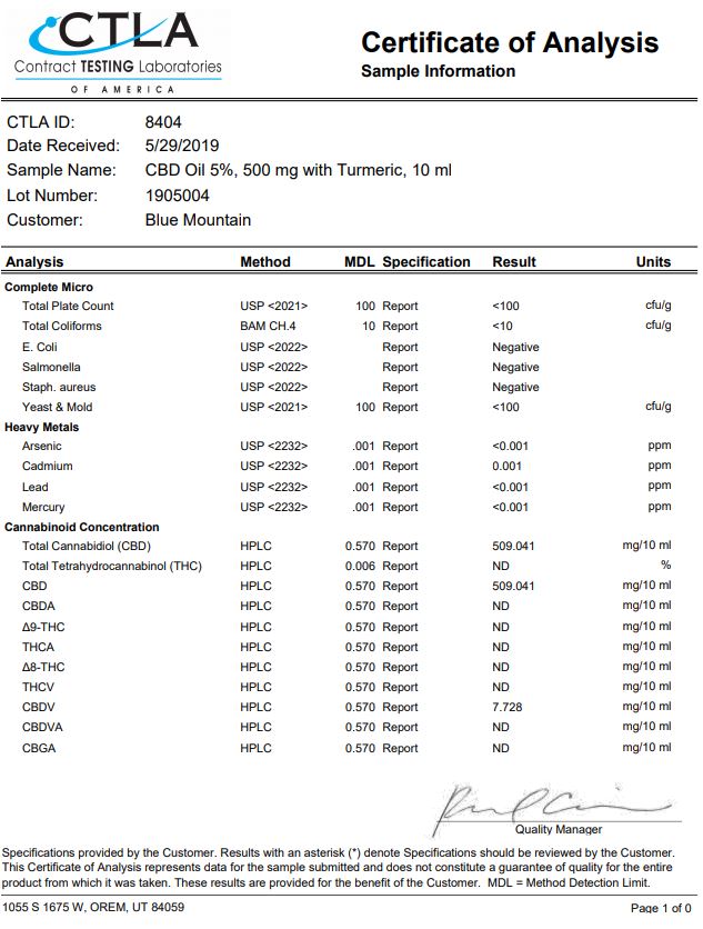 Ingredients: Organic MCT Oil, Broad Spectrum Terpenes, cannabidiol (CBD)