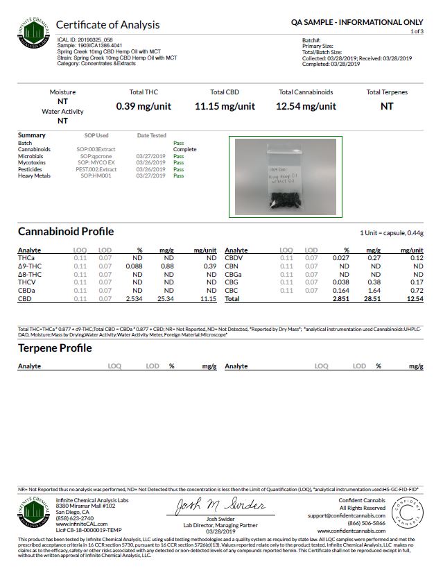 Ingredients: Hemp Oil, Broad Terpenes, Gelatine
