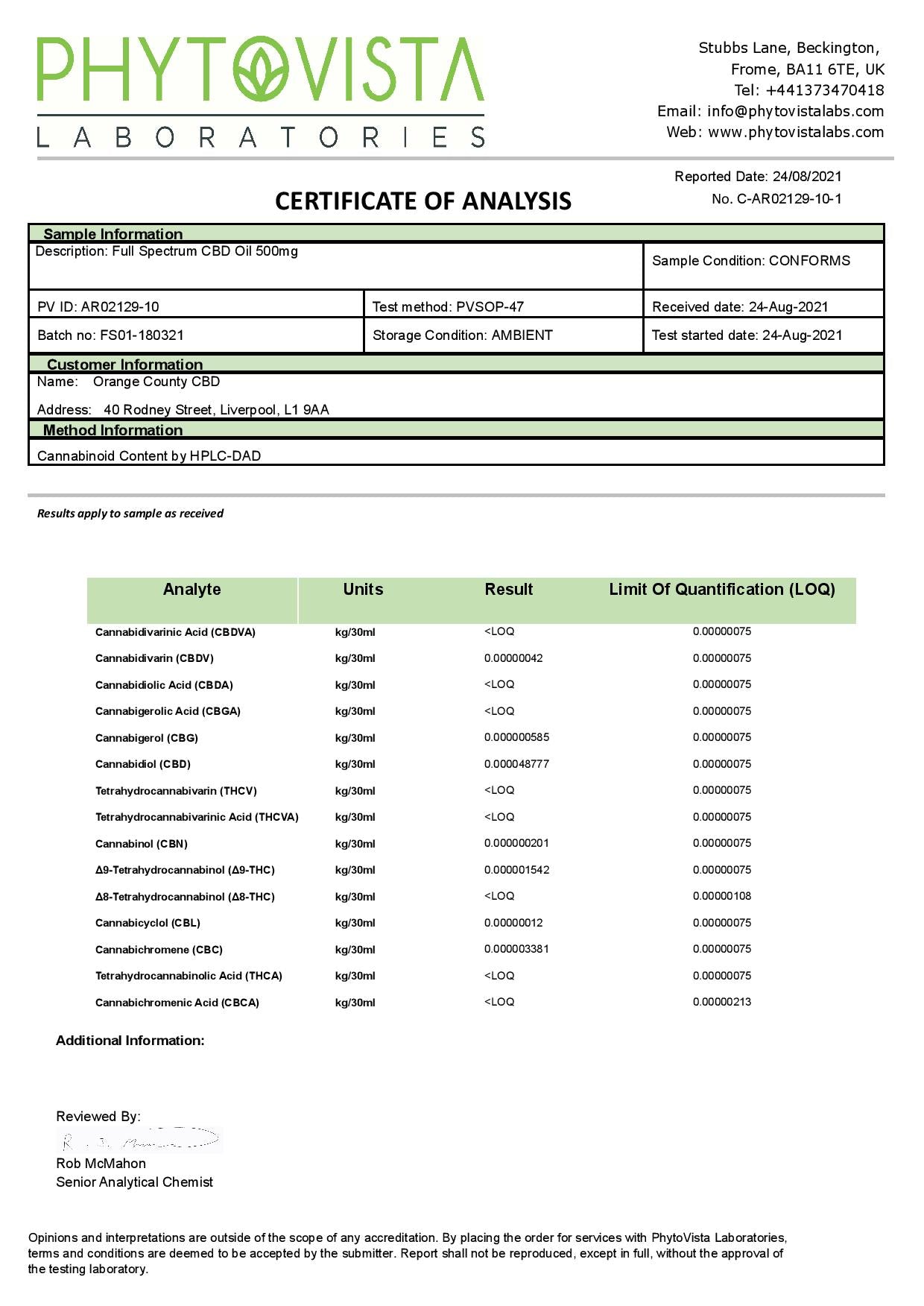 Containing only trace amounts of THC, we’re able to give you that excellent full-spectrum experience whilst maintaining trading compliance and sticking to Orange County CBD's own understanding about what makes CBD truly high-quality. At a relatively strong concentration this bottle is perfect for someone who knows exactly what their ideal dose is. With their naturally occurring terpene extracts, this 500mg Full Spectrum CBD oil has an authentic taste and smell, making it as pleasant to take as it is effective. Quality and its full-sized effect of this large CBD oil is not sacrificed despite it's small size and lower price point.