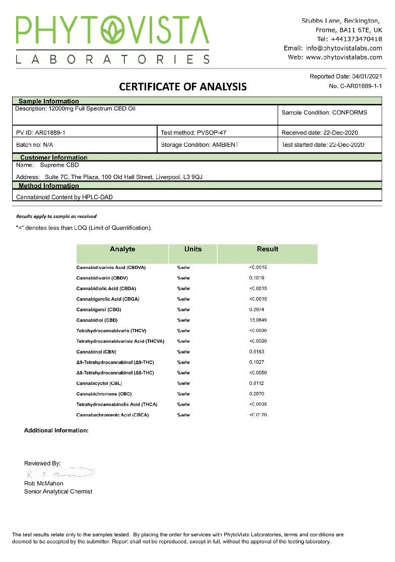 If you're looking for a high-quality, organic full spectrum CBD oil to experience for yourself, then you can't do better than with Supreme CBD's own 12000mg Full Spectrum CBD Tincture Oil where with a healthy dose of CBD will allow both your body and mind to experience all the effects of the whole hemp plant.