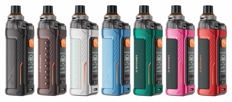 Vaporesso Armour G Kit - The Vaporesso Armour G sub ohm kit is a durable device that accommodates both MTL (Mouth To Lung) and DTL (Direct To Lung) vaping. Compact and weather-resistant, it’s designed to withstand bumps and drops, making it an excellent option for those seeking a robust vaping solution. Equipped with a built-in 3000mAh battery, this kit offers a power output range of 5-80W, allowing you to produce either small or large vapour clouds. Included in the package are one Armour G Series pod and two GTX coils, so you can simply add your favourite e-liquid to get started.